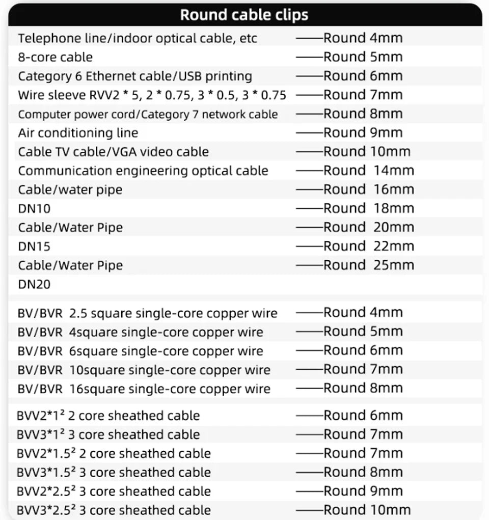 100pcs Cable Clips 4/6/8/10/12/14/16/20mm Cable Wire Clips Nail In Cable Clips Cable Tacks Coaxial Nail Clamps Nails For Cords