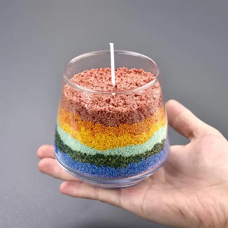 Usage: Pour colored sand wax particles into a container, insert a cotton wick, and then light the candle
